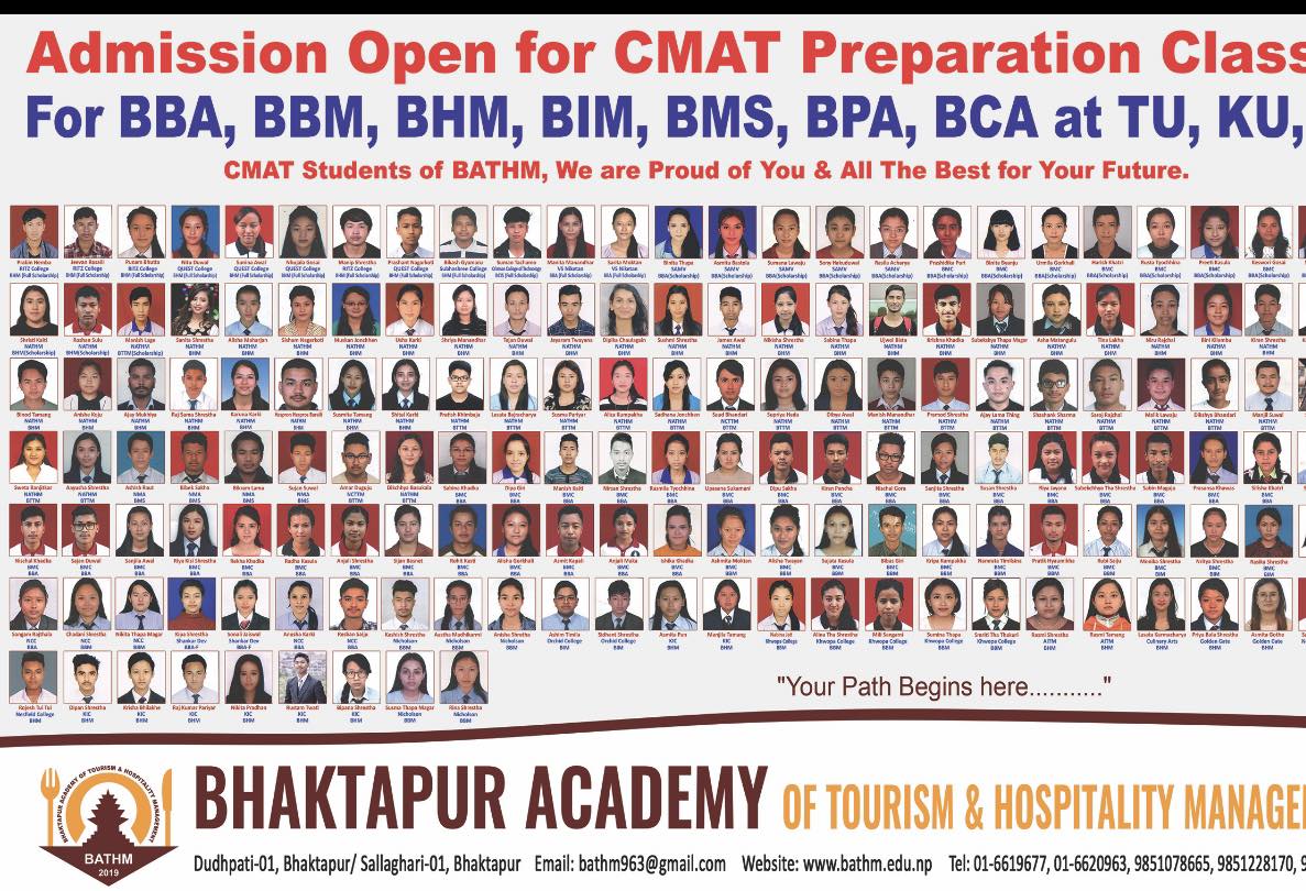 Common Management Admission Test (CMAT) is a national level entrance examination conducted in Nepal by the Faculty of Management of Tribhuvan University.It is a highly competitive exam that tests the candidates aptitude with objective questions on a total weightage of 100 marks to be able to qualify for Bachelors level programs in Management discipline.